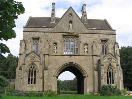 Straddling the Green Ride through the forest, the lodge was sited so that the Centre Tree, a mile and half away, could be seen through the arch. The design is based externally on Worksop Priory Gatehouse. The gatehouse is an important building because it still has the original mediaeval sculptures adorning the outside, very rare survivors of the Reformation.